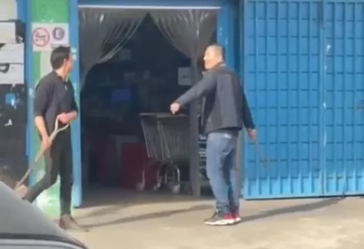 “Se escuchaban gritos y el hombre iba y venía con actitud violenta. En un momento volvió con una pala y empezaron a pegarse”, contó la testigo. Por su parte, el dueño del supermercado se armó con un palo que tenía a mano y así el enfrentamiento entre los dos hombres se trasladó a la vereda. Algunos vecinos, sin poder creer la escena que veían, empezaron a filmarlos con los celulares pero no se atrevían a intervenir.