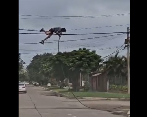 Los casos de robo de cables, el delito de moda en la crisis que ya se cobró varias víctimas fatales durante este verano, se replican en distintos puntos del país. Esta semana se registró uno más en la ciudad de Resistencia, provincia de Chaco, donde un hombre se colgó del tendido eléctrico que cruza la calle e intentó cortar los cables. Sucedió a plena luz del día y un testigo filmó la situación.