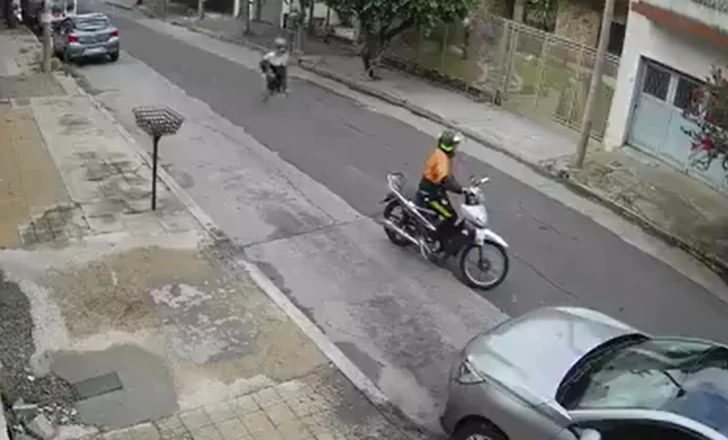 “Andá de una, perro”, se escucha decir al malviviente que manejaba la moto de su compañero, quien aparentemente demoró más de la cuenta en bajar del vehículo para concretar el robo.