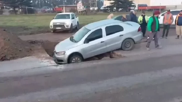 Un auto quedó atascado este jueves en un pozo gigante que hicieron para una obra en la ruta 88 y la conductora denunció que no estaba señalizado. Las imágenes son impactantes y no hubo heridos de milagro.