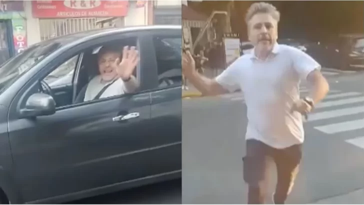 La secuencia tuvo lugar en el cruce de las calles Coronel Ramón Falcón y Rivera Indarte cuando un hombre, identificado como Sebastián, grabó con su celular al conductor que una cuadra antes casi lo embiste tras cruzar de manera imprudente: “No viste el semáforo, ¿no? Casi me pasas por arriba”.
