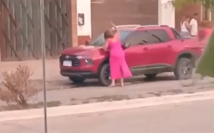 Mientras el hombre se encontraba en su puesto de trabajo, la agresora, Ana Rosmeri Peñalo, se mostraba alterada, a plena luz del día, descalza, rodeó una camioneta roja con un martillo en la mano, intentó causar daño de varias maneras y ante la falta de resultados, golpeó directamente sobre el vidrio del parabrisas donde logró varias abolladuras.