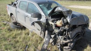 Un violento encontronazo se produjo en el Km. 399,5 de la ruta 3 donde intervinieron una camioneta Toyota 4×4 y un vehículo Peugeot 206.