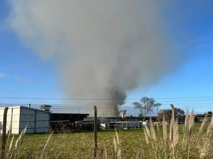 Bomberos trabajan desde poco después de las 16 en el control del fuego que avanzó sobre un sector de la Unidad Penal de Batán, donde el siniestro se inició por causas que se desconocen y hasta el momento no registraría internos ni personal del lugar lesionado.