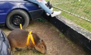 “A Eusebio lo crie yo, duerme conmigo, lo baño y vive normal”, dijo Agustín, el dueño del carpincho cuya foto se hizo viral el pasado fin de semana cuando lo llevaron a la cancha a ver un partido de la liga local.