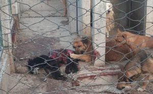 En las imágenes difundidas se ven perros lastimados, enfermos y desnutridos. En el último posteo de la protectora se compartió la imagen de un can muerto al lado de otro que, en apariencia, se lo está comiendo.