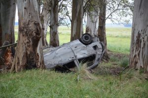 El vehículo en cuestión, un Fiat Palio, habría perdido el control y sufrido un vuelco, quedando en un monte de un campo lindero a la ruta. Tras el vuelco, el vehículo se incendió.