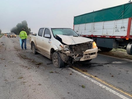 Por causas que tratan de ser establecidas, una camioneta Toyota Hilux embistió a un automóvil Citroën Berlingo cuando transitaban por la cinta asfáltica.